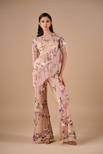 Beaded Floral Tunic And Ombre Sequin Flare Pants