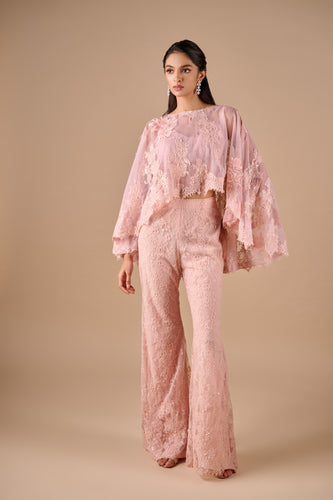 Flare Lace Cape With Lace Bandeau And Floral Lace Flare Pants